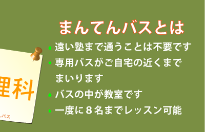 レッスン(算数・数学・英語・理科)の無料体験が可能です。教室と変わらない車内を見に来てください。